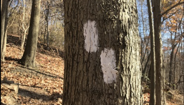 The most common blaze is a white stripe, but they can be many different colors. Identify your blaze early on in case you find yourself off path.